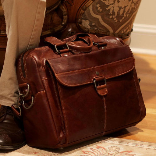 HAND-STAINED BUFFALO LEATHER Keep your files and documents neatly organized and your laptop computer well-protected in this Voyager Top Zip Briefc...
