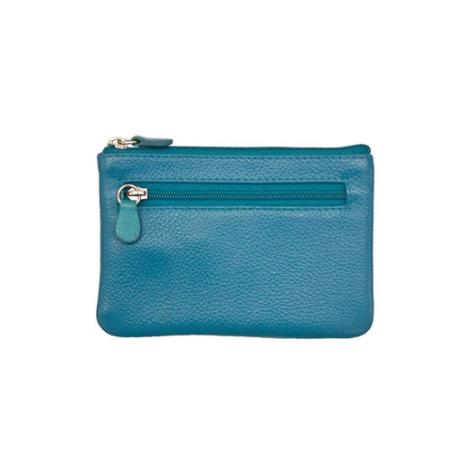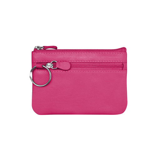 Genuine leather coin purse. Exterior- top zip with zip compartment. Interior- key holder. Dimensions: 5 x 3.5 x .2 in. Great for coins, currency,...