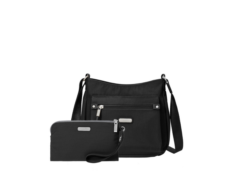 Whether your day takes you uptown, downtown, or anywhere in-between, the uptown bagg with RFID wristlet will help you stay organized and ready for anything. Made with durable, lightweight nylon, this water-resistant bagg features an adjustable strap, so you can wear it on your shoulder or as a crossbody. A removable RFID wristlet helps keep your information safe.