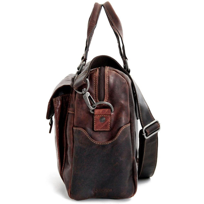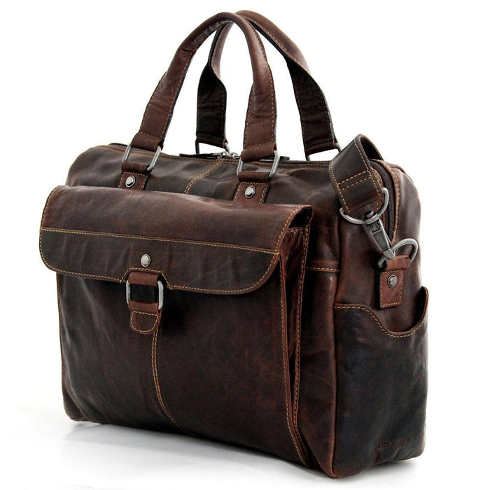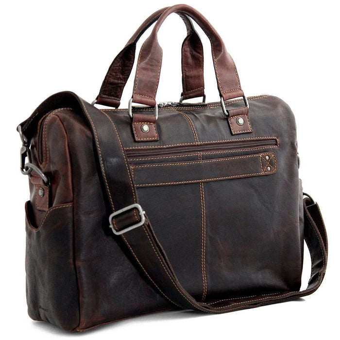 Keep your files and documents neatly organized and your laptop computer well-protected in this Voyager Top Zip Briefcase. Its soft, smooth, and supple buffalo leather builds a beautiful, rich patina as it ages. Top zip closure allows items to be secure inside including laptops with up to a 15" screen. The large front pocket and zippered back pocket are the perfect places to keep items that you need quick, easy access to. A trolley strap on the back comes in handy when you're traveling as it allows the bag to be attached to a wheeler. Organizer pockets inside will hold your cell phone, wallet, pens, and accessories. A full-length zippered inside pocket will keep your critical documents separated and secured. An adjustable/removable shoulder strap adds carrying comfort and convenience. This handmade leather briefcase features: