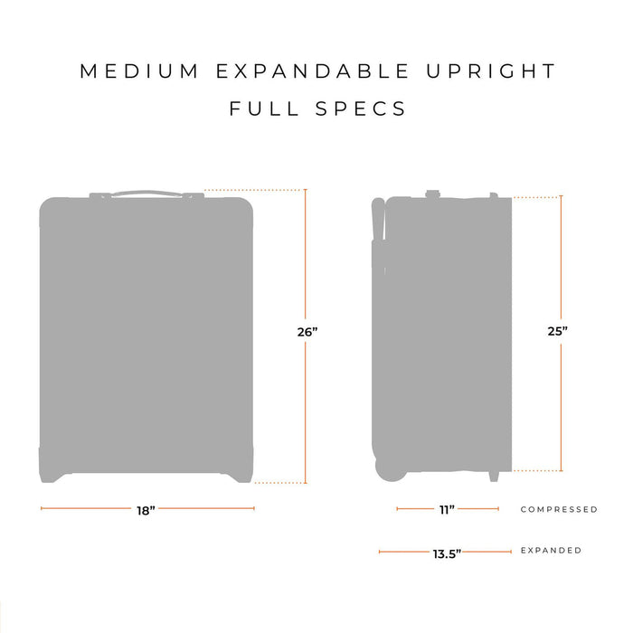 Spacious packing meets classic style with the Baseline Medium Expandable Upright, a mid-sized suitcase ideal for longer trips. Pack all your favorite outfits while keeping your bag trim thanks to our one-touch CX® expansion-compression, and enjoy perfectly flat packing with our Outsider® handle that minimizes wrinkles to keep clothes looking flawless. Plus, with its legendary Briggs & Riley craftsmanship, this expandable medium suitcase is built to endure years of adventures.
