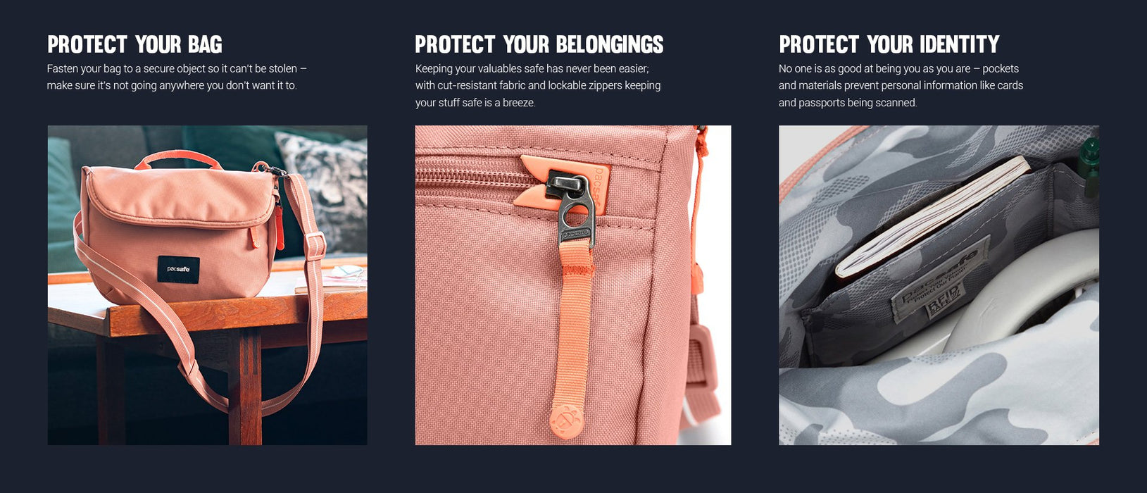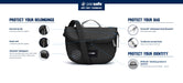 - Cut-resistant anchor strap secures around a fixed object to protect your bag