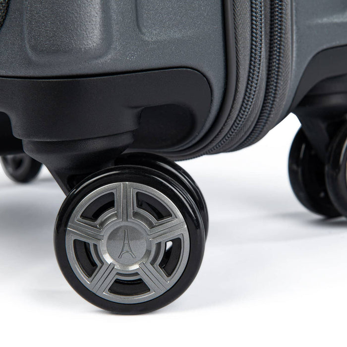 On carpet, sidewalks and everywhere in between, this beauty flies with precise control and effortless roll, thanks to the Travelpro®exclusive PrecisionGlide™ System–eight MagnaTrac® self-aligning spinner wheels led by a sturdy, four-stop adjustable PowerScope Lite handle with comfortable Contour Grip.